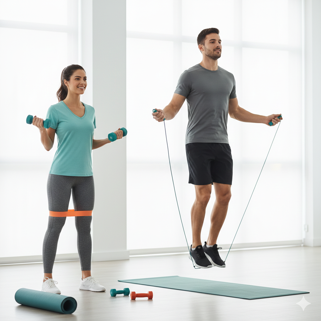 Apresentamos acessórios desenvolvidos para otimizar o desempenho, aumentar o conforto e melhorar a segurança durante os exercícios, como faixas elásticas, colchonetes, cordas de pular, halteres, caneleiras, rolos de liberação miofascial, luvas, straps e acessórios de apoio, ideais tanto para iniciantes quanto para praticantes avançados. Também destacamos os materiais e tecnologias mais comuns nesses produtos, como borracha natural, látex, EVA, neoprene, tecidos respiráveis e sistemas de ajuste ergonômico, explicando seus benefícios e aplicações.